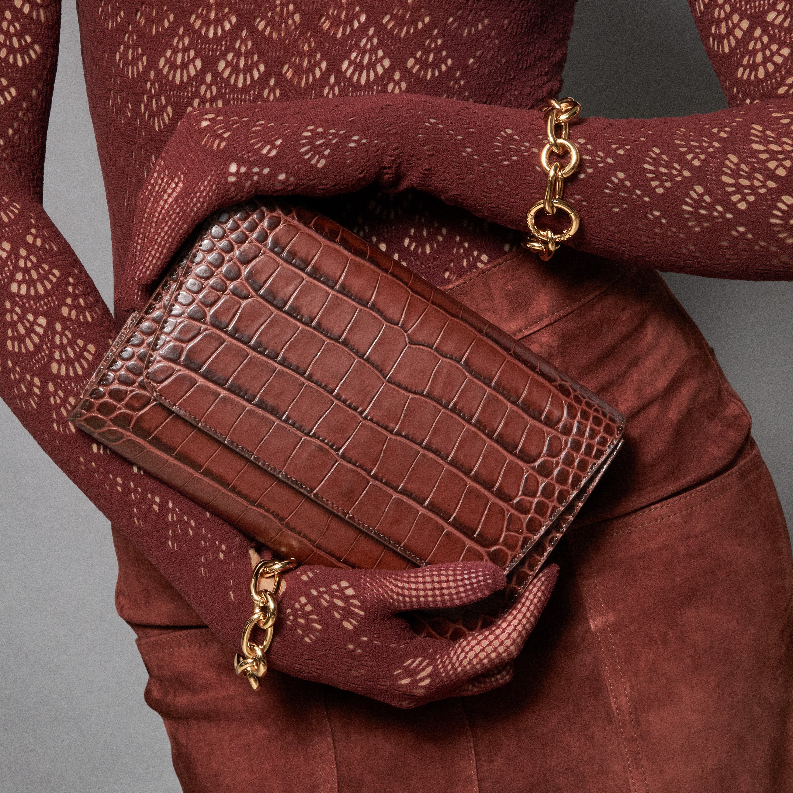 - Leather & chain cross-body strap, 22” (55,9 cm) drop