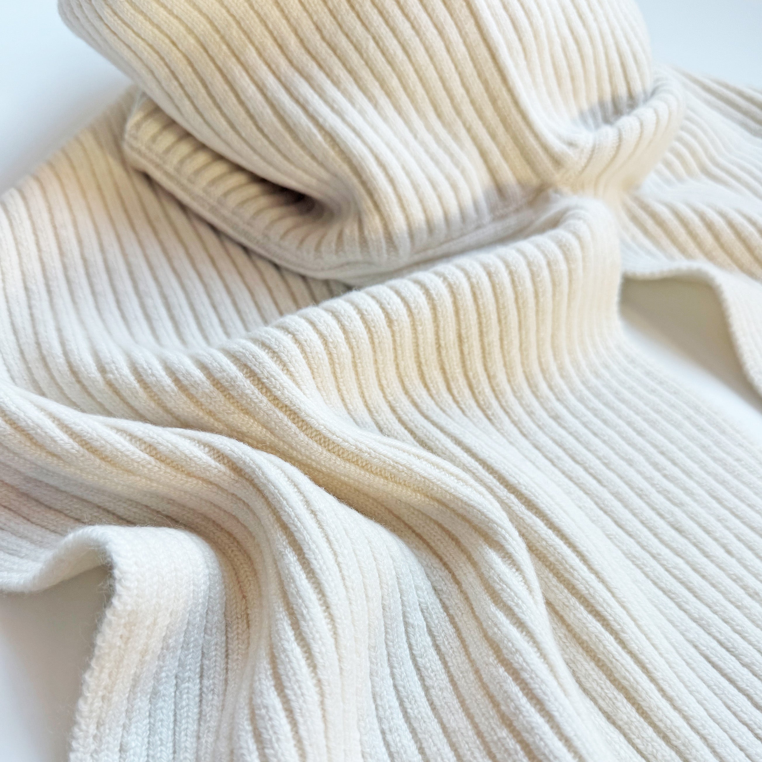 - Hilo de cachemir de 3 cabos. Tejido de punto acanalado.